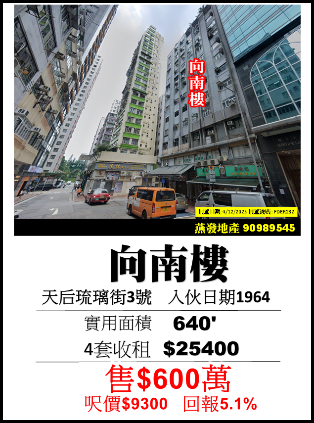 04. 益豐大廈高層 實用760尺 海景間間有窗 4套房 連租約24550元 售748萬 地鐵口 https://maps.app.goo.gl/kv52CafMjKeeSCBA6 |