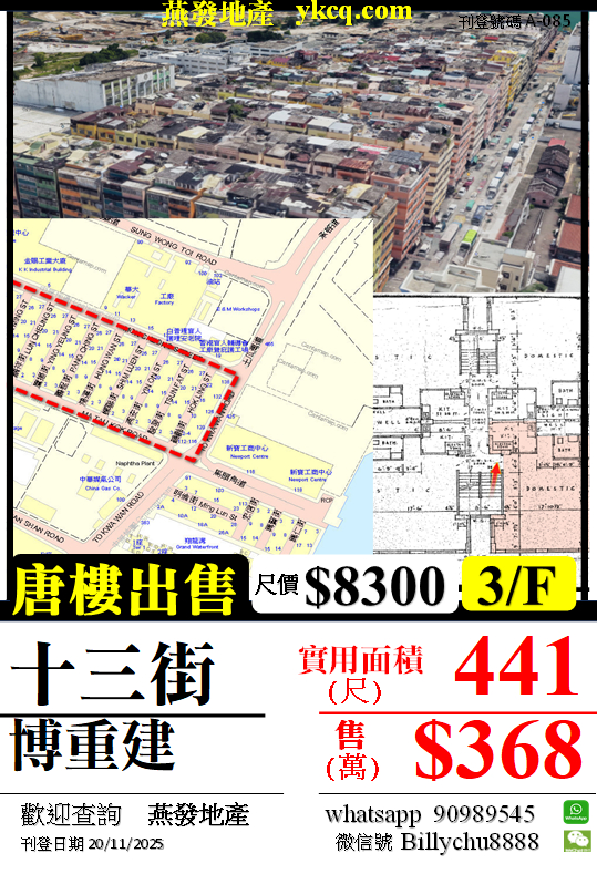 物業位置 : https://maps.app.goo.gl/7PkYy8gQpYVFwuas8 歡迎查詢 90989545 朱先生